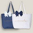 This personalized Bridesmaid tote is the perfect way to ask your bridesmaids to be a part of your special day. The tote features a pretty heart design and can be customized with the bridesmaid's names, making it a thoughtful and unique gift. The bag is great for a bachelorette party or for holding all the essentials your Bridesmaids want to have on your special day. Available in a variety of color options for both the tote and text, this tote is also suitable for the Maid of Honor. With our super fast turnaround time, you can quickly and easily have these bags to serve as the perfect Bridesmaid Gifts.