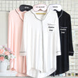 Our Listing is for Any Quantity, Starting with One Sleep Shirt. Text Color: White on the Black Sleep Shirt, Black on the White and Blush Sleep Shirt