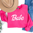 A must have this fall! This lightweight hot pink sweatshirt is adorable, featuring the 'Babe' design in white colored text. Our material is soft and comfy, perfect to wear all season long!
