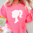 A must have this fall! This lightweight hot pink sweatshirt is adorable, featuring a silhouette design in white colored text. Our material is soft and comfy, perfect to wear all season long!