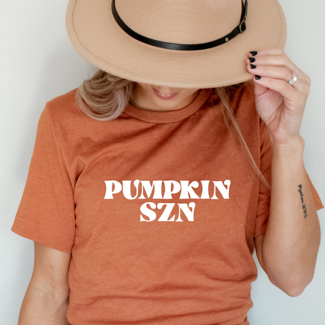A must have this fall! This lightweight crew is adorable, featuring 'Pumpkin SZN' in Fall colored text. Our material is soft and comfy, perfect to wear all season long!