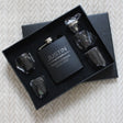 Our Personalized Engraved Flask and Funnel Sets Make Great Gifts for Your Groomsmen, Father of the Bride and Groom, Ushers, Birthday Guy, Father’s Day, and More! Each Flask is Engraved with a Laser Creating a Crisp, Stainless Steel Finish. Every Set Includes a Black Gift Box, 1 6oz. Black Powder Coated Flask, 1 Stainless Steel Funnel and 4 shot glasses.